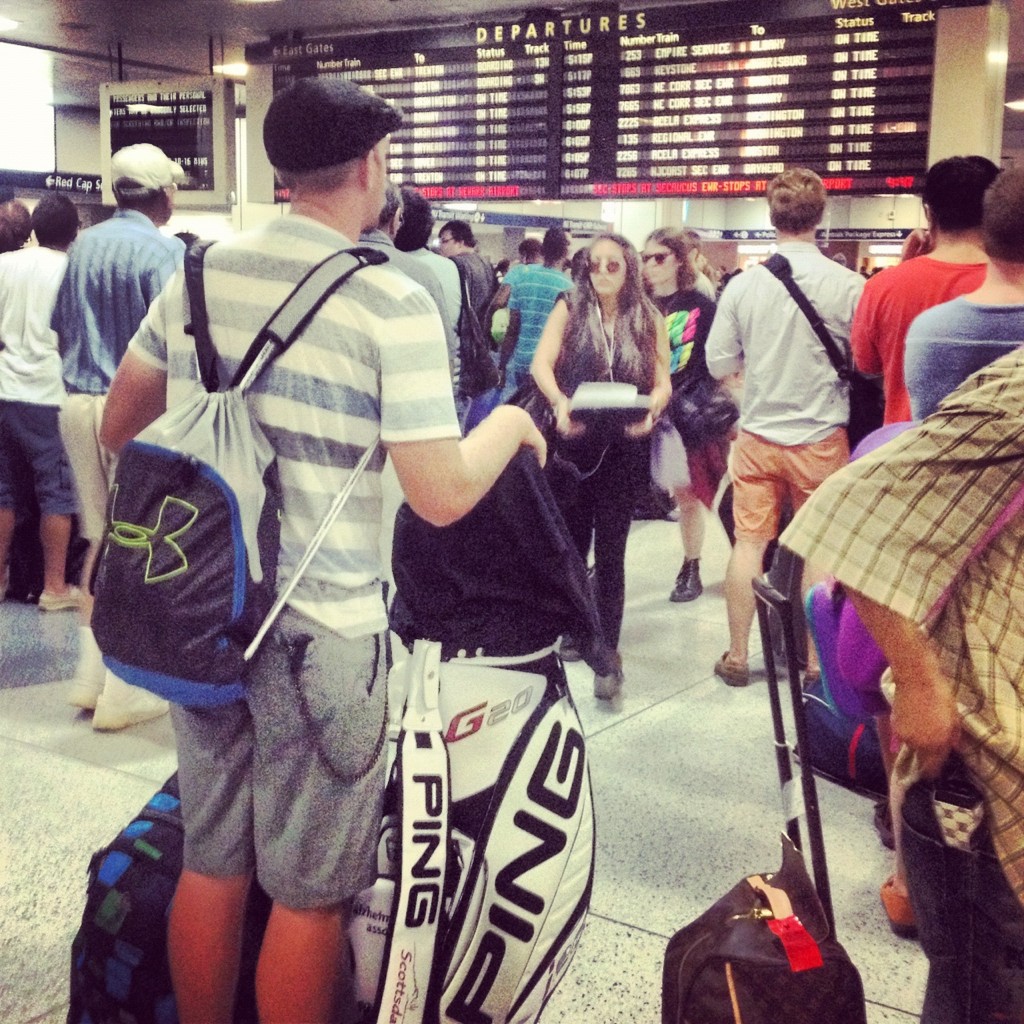 Hunter Mahan carrying his clubs in New York's Penn Station?