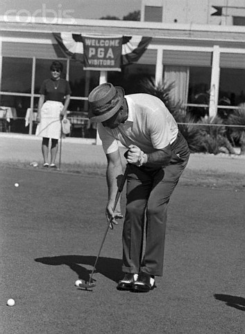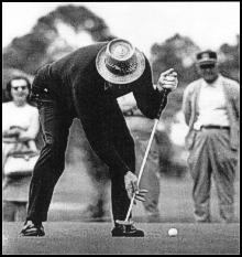 He eventually started putting side saddle, leaning way over the putt from the side.