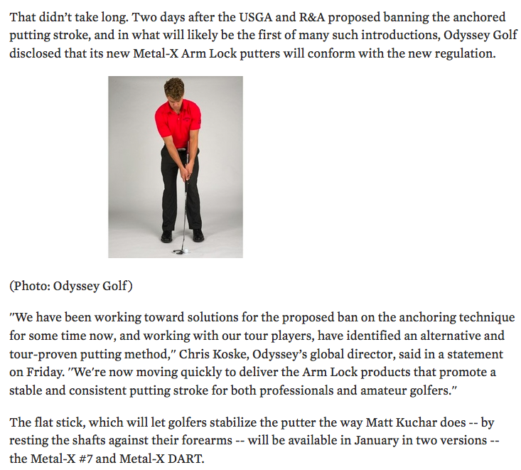 Not that I don’t mind get pummeled from all sides on the merit of the ruling, but what’s the deal with the Arm Lock putter?