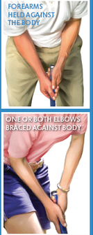 You agree you're smarter, but you contend there's some way for you or your friends to confuse what's a legal stroke and what's not.   The picture below makes it quite clear.  The putter can't be anchored directly against your body and you can't anchor your forearm against your body and hold the top of the putter.  Forearms and elbows touching the body are legal as is forearms held against the body.