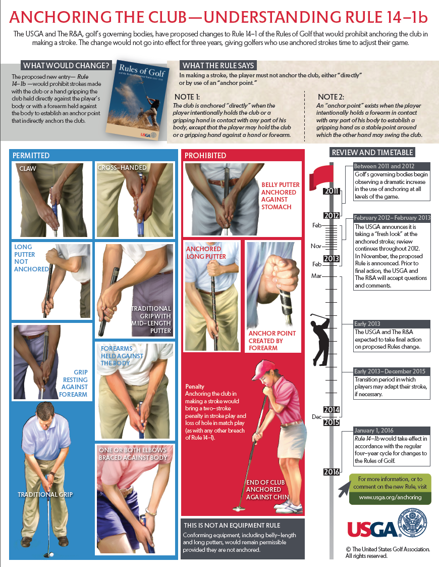 For more information about the newly proposed Rule, as well as additional information including videos and images of strokes that would be allowed or prohibited by the proposed changes to Rule 14-1, visit www.RandA.org/anchoring or www.usga.org/anchoring.