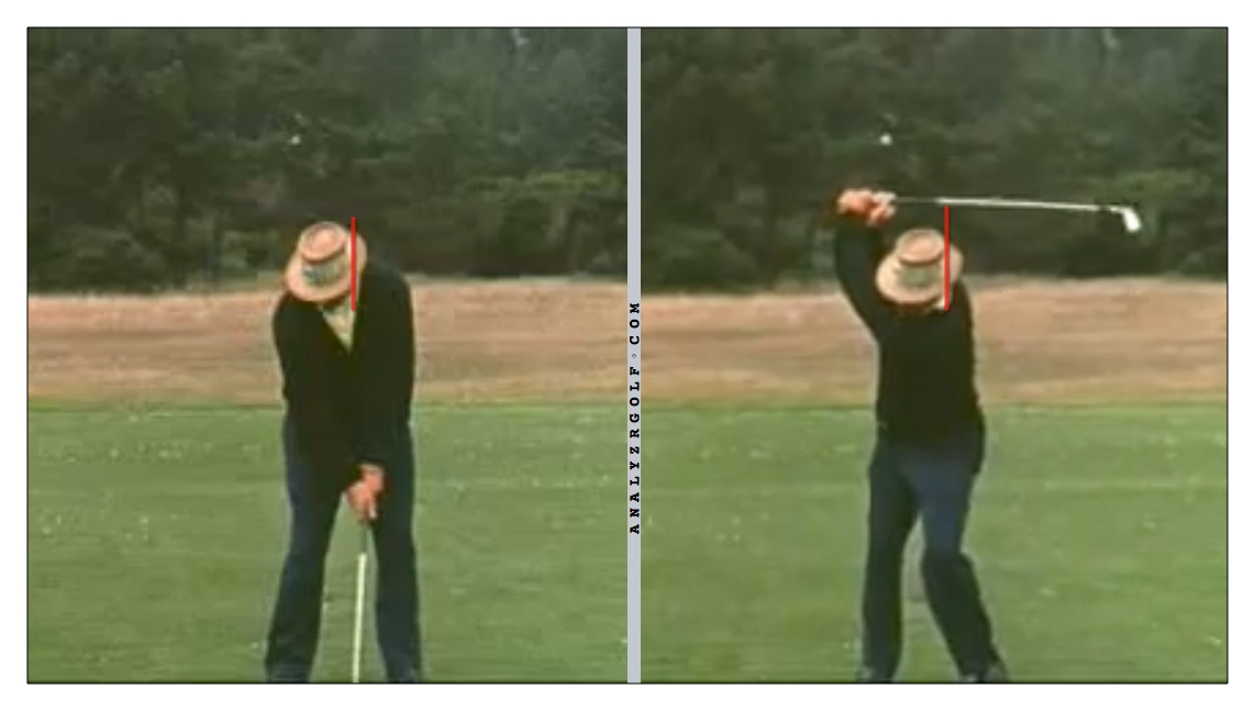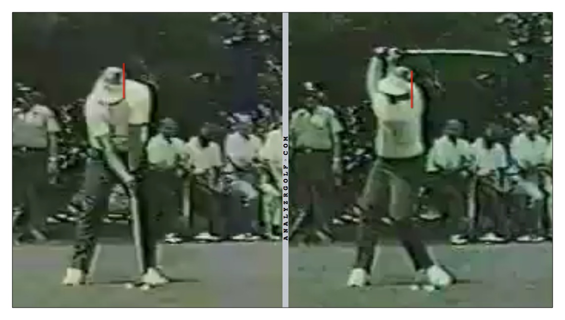 Curtis Strange/ Doctor Gil Morgan/ Tiger Woods/ Anika Sorenstem/ Nick Faldo/Arnold Palmer/ Lorena Ochoa.. All had noticeable head movements.. Ben Hogan and Tiger both had a big drop as they both had more of a squat impact position.