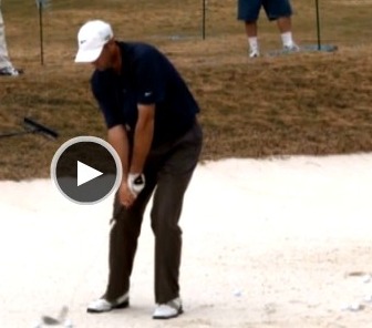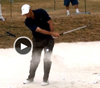 He says, you make a relatively short backswing and accelerate through the ball. Yet they show an video of professional, who takes a 3/4 swing for a green side bunker shot. If you took a 3/4 swing from a fairway you would hit the ball way farther than necessary than for a bunker shot. The reason a bunker shot goes shorter.