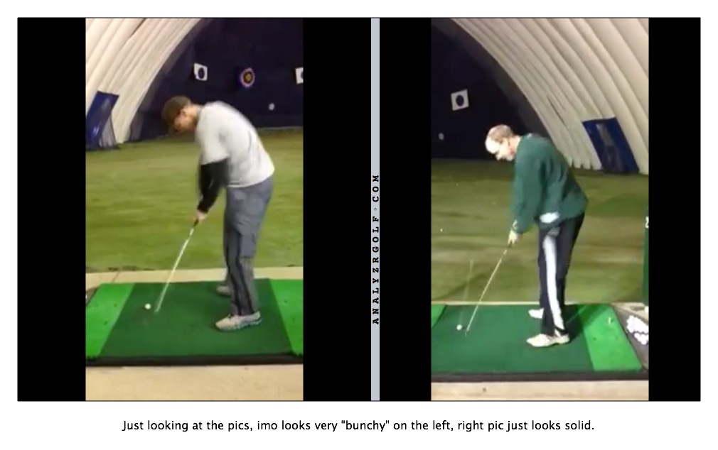 Mvmac, sometimes.  Rarely do I hit a pull, or a shot that starts right of my target line.   I don't mind it when I hang one out just a little left and it doesn't draw back.  But probably 3 or 4 times out of 20 a push fade creeps in, and I can't stand it!  I just want every ball I hit to be left to right, even if occasionally it's too much left to right.  I was looking at the stack and tilt book a little more, and perhaps my ball position is a smidge too forward?  It also looks like Bennett gets a little more forward press than me?  Just may be a couple things I'll look at.