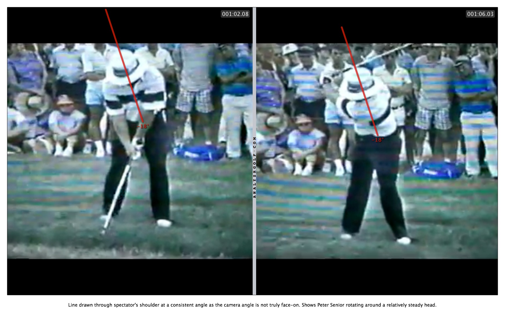 I would suggest that Senior is an anomaly, and is highly adapted and skilled at getting himself into the correct position where it matters - through the hitting area. But as it's been said elsewhere by the 5SK guys - the majority of proficient golfers move their heads very little throughout the swing.