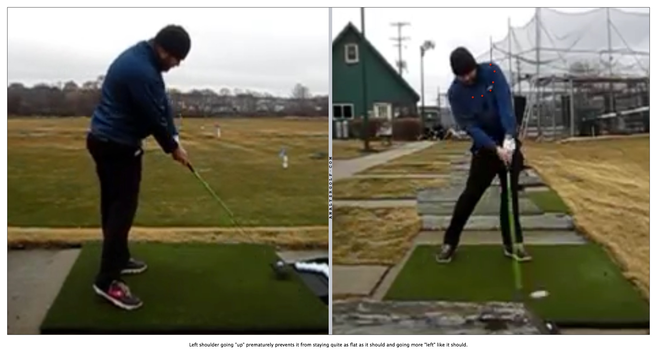 Just tried to swing without much thought, and I still have the flat shoulders and the hips could be a bit better as well.  Those will probably help too if I can get them corrected.