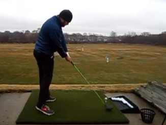 Trying to figure out why I am getting the occasional pull hook with the driver (maybe 7-8 balls of the 40 I hit). At least I am not getting the big push cut and the pull hooks this year like I was last year. I made a very subtle grip change in the right hand, that seems to have helped a bit in this session. These two shots were straight draws to slight pull draws, but not bad hooks. A decent right to left wind so they could even have be pretty straight. Something from time to time is happening that shuts down the face when I get the pull hook the start lines are obviously more to the left. My feet may look a bit closed here but if you look at the mat on the left side and consider the vanishing point they are pretty square.