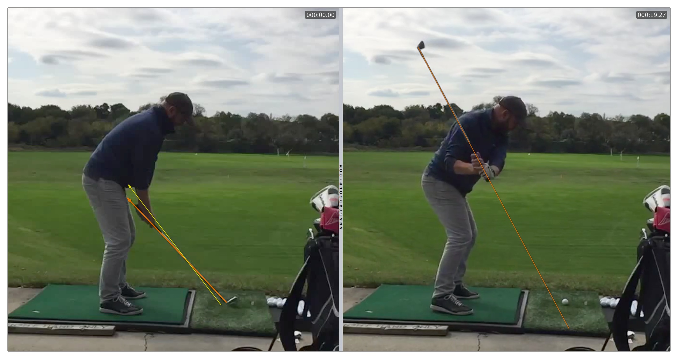 It is actually the same swing.  What Erik was showing was that before moving the club to the ball the hands got a bit deeper and dropped a bit.  Maybe you caught that but just in case.  Small details though.  That is my tendency, if I swing out I get the hands deep and low.  Habits are hard to break.  I have been trying to get the club wider, with the hands more to the left picture as I transition into the downswing.  When I can keep the hands from getting overly deep I tend to get too steep coming down, like some of my more recent swings.  Getting the hands like the picture on the left and then transitioning to a shallow downswing is hard for me to get.