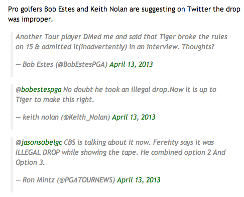 Certainly wouldn't be the first time Tiger was penalized for an incorrect drop http://www.golfchannel.com/news/golftalkcentral/woods-penalty-misses-abu-dhabi-cut/