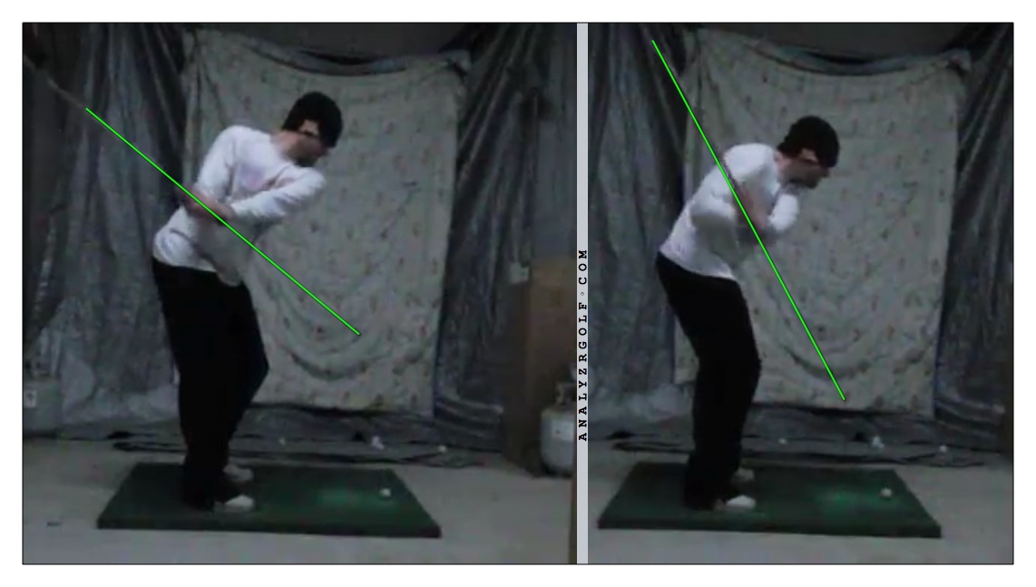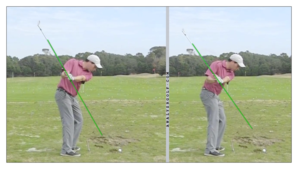 Here's what I see with your swing.  Weight gets too far back on your heels and causes you to load the shaft too shallow.  You go "shallow" to "steep".