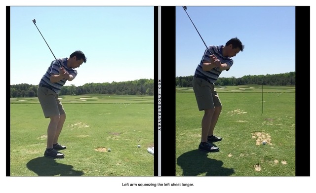 Takeaway from 1-2.5 wonky. Lots of space/air around left armpit. A bit lifty. Noticed this immediately after watching the swing vid so tried to keep L arm pinned to body more on takeaway for remaining drives - accuracy and distance stayed the same.