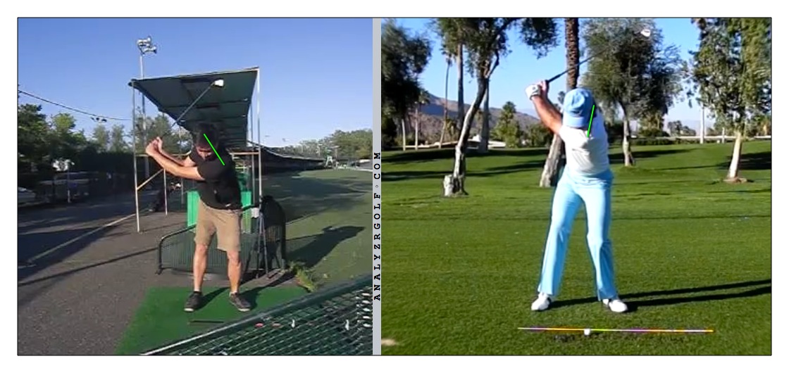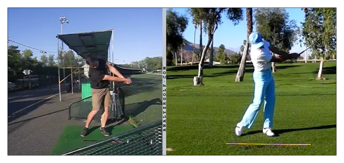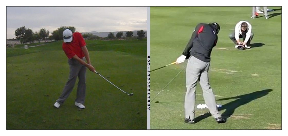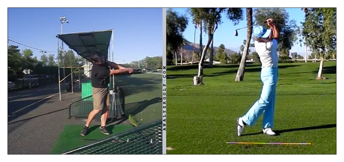 Notes: When I go at the ball hard, I stand up/extend, flip, lose control & distance. If I swing controlled, I get better impact conditions but don't get my weight forward.