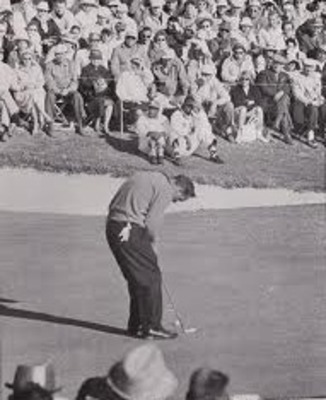 As our family watched the broadcast, we waited with anticipation to see Arnie.  Remember, back in those days TV would pick up the golfers at the 15th hole. Arnie was one shot back when he made a long 30 foot putt on 17 to tie Ken Venturi for the lead. Then Mr. Palmer hit his approach to 6 feet on 18. After watching Billy Casper, a notoriously good putter, miss his 6 foot birdie putt, we held our breath in quiet anticipation. But, never fear, Arnie made his putt and I had a new hero. Arnie then won three more tournaments that year, including the U.S. Open, for a total of 8 tournament wins. Not only was he a winner, but he was gracious and a swashbucker, to boot.