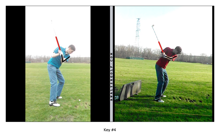 Yeah check out the other pics of the student.  The before pics look like this, lack of torso rotation, club head outside the hands, student is probably struggling with contact and hitting cuts. So getting the hips to turn more, will change the picture but more importantly change this golfer's control of Key #4 and allowed them to start hitting out.