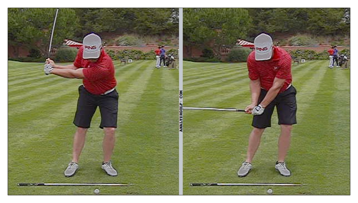 The only common element in every tour level swing is the weight has mostly transferred to front side and hip rotation has occurred, so hips are 45+ degrees toward target at impact. Amateurs often have most of the weight on back foot at impact and hips square to ball. If you look at just IMPACT POSITIONS of tour players you see almost identical positions in hip rotation and back foots heel has risen showing weight transfer has occurred. The pro move starts at top of the swing, pros plant weight solidly onto front foot, that drops hands inside and low into the slot, the weight transfer and hip rotation creates the lag, end result is, hips 45 degrees or more toward target at impact and back foots heel off ground. If you know where to look, every tour player becomes identical at impact. Pros heads move slightly down on backswing and down again on downswing. Most anateurs rise a little backswing and rise again on downswing.