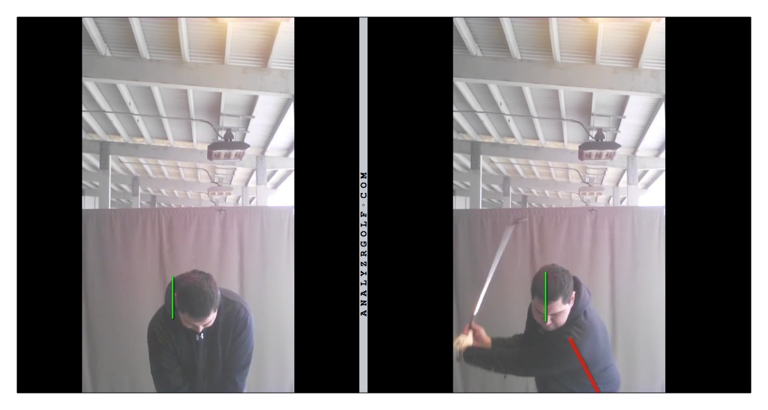 Notice the red line, you are kind of "flexed" over your right foot. When you do the wall or stick drill, you'll feel like that "line" is more vertical.