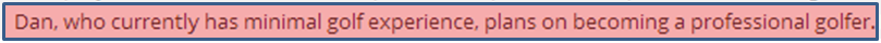 Just because the website says that he "plans" on becoming a professional golfer does not mean that he "aspires" or "dreams" or "expects" to become one.