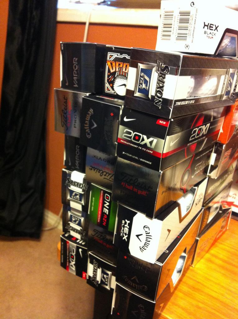 Every since I got serious about golfing a few years ago, all my friends and family feel the logical Christmas and Birthday gift would be balls. I have Tour Ball, Soft Balls, Yellow Balls, 3-piece Balls, 4-piece Balls, Refurbished Balls, and every other Ball you can think of. Not sure If I should commit to one ball or count my blessing and never half to worry about buying balls again.