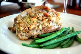 Tonight I made stuffed pork chops w/ cream of mushroom gravy, green beans, mashed potatoes and corn on the cob.