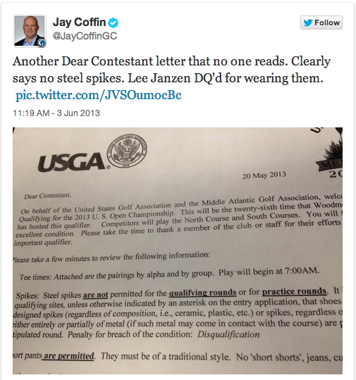 Lee Janzen is DQ'd in US Open Qualifier for wearing Metal Spikes
