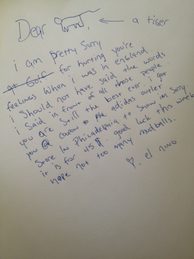 "Dear Tiger: Psssssssst meet me in the shower. Sshhhh its Sergio"