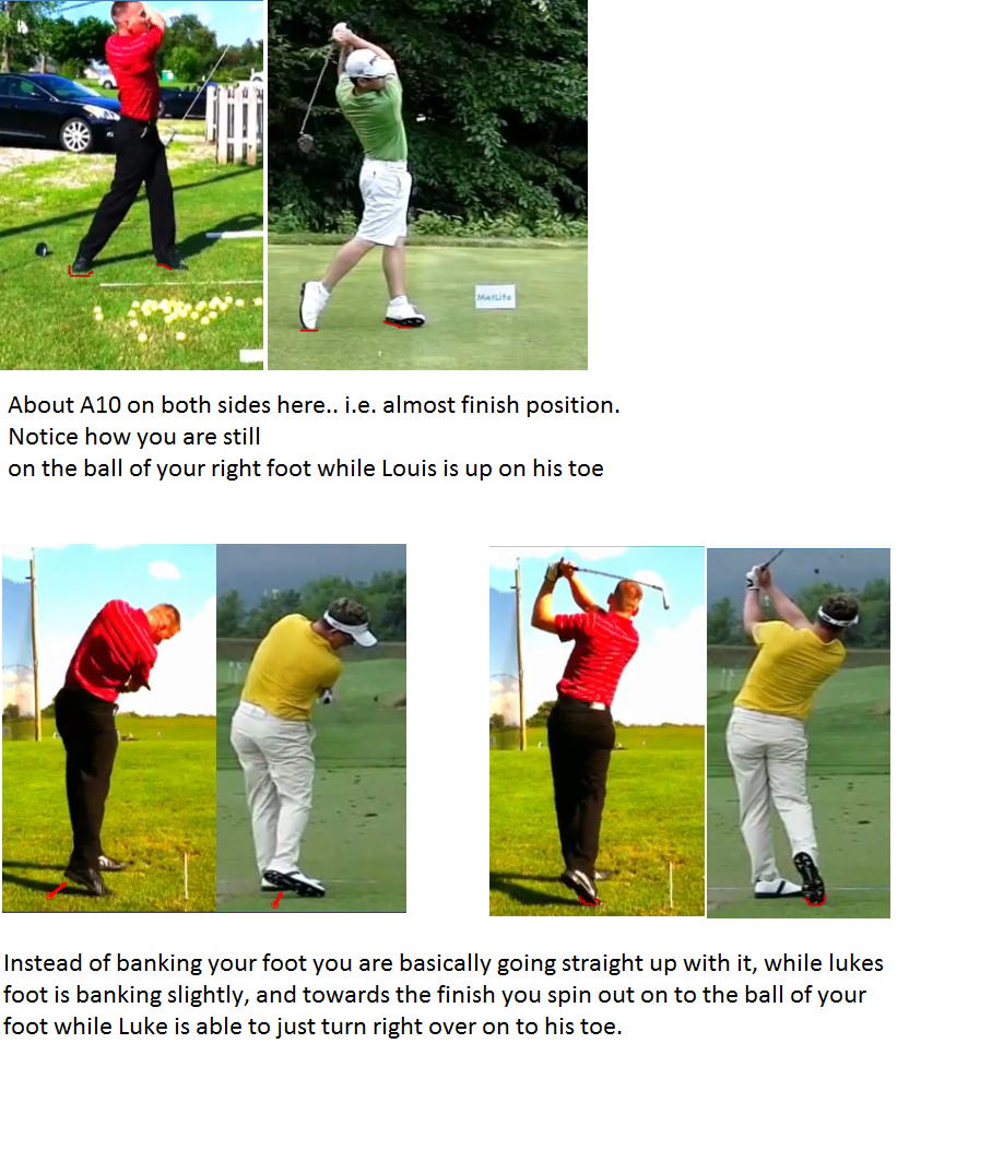 Very true.. Just take a look at your position at A9 or A10 and compare with any pro and you will see what I mean.. Basically your right foot ends up twisting around itself and it ends up on the sole of the foot instead of banking, sliding forward and then turning into the finish..ending on the instep of the tip of the toe or just hanging by a thread on the toe.