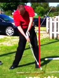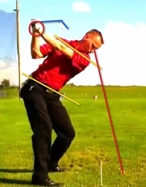 club shaft is pointing across the line *Just guessing that's not good because I don't see that when I look at other good swings*