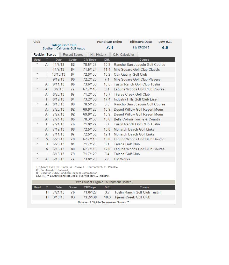 With the November revision, I'm done posting scores for 2013.....I went from 1.6 to 1.7 and that is where I will stay until after I begin posting scores again April 1st.