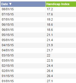 August 1 handicap: 14.4, personal best so far. Trend index after today's round: 14.2.