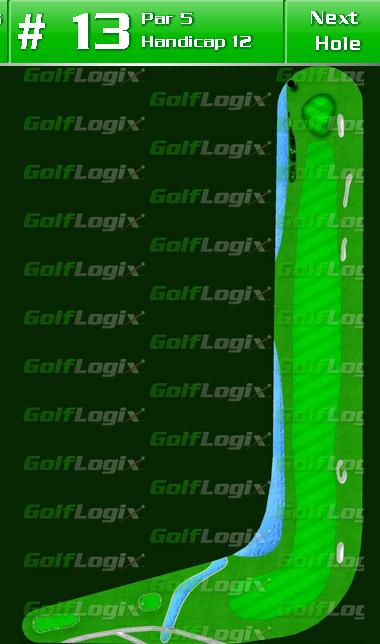 I actually had a hole last night where pulling the 3 wood was a bad choice. You can see the hole layout below, it's a weird par 5 with a sharp dogleg around a pond. It's a links course and has a tall rough on the right side of the fairway.It's probably 200 yards to that bunker that is straight ahead of the tee box. A good shot straight down the fairway would reach some houses on the other side, and I wasn't sure I could clear the pond if I cut the corner, so I decided to be safe and hit my 3 wood. Unfortunately, I sliced it off into the tall rough, so I was in tall rough and still over 300 yards from the green.
