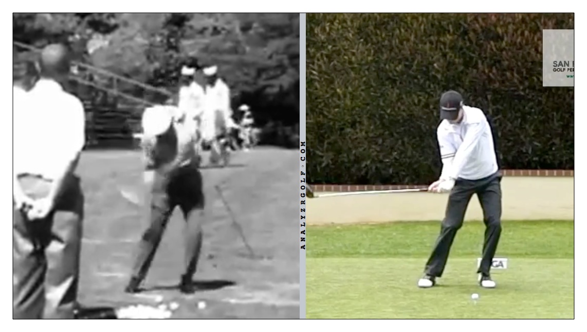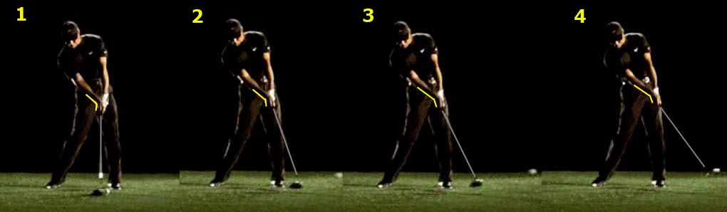 For example, here is me vs. Tiger at impact.  This was me when I was focusing intently on keeping my shoulder low.  Notice how even with all my focus on that it's still nowhere near his angle?  I have no issue with this until the clubs get longer because the driver swing feels nothing like an iron swing to me.