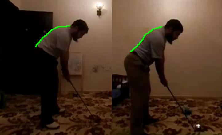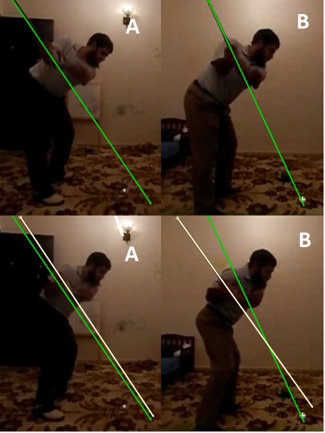 2.  As you can see from the below, it looks like with the posture change my take away has become shallower than below.  In fact, I noticed that it helped in my transition to the downswing as there is no extra motion to make my self come in shallow on the downswing.  Is this something I should even worry about, or should I just continue practicing and ingraining my new posture and worry about everything else when the time comes?