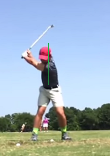 As you can see the right shoulder is pretty well externally rotated at the top, and then goes internal early in the backswing. The right forearm goes from vertical to less so, and the trail elbow actually moves behind your body more, or less "in front of your chest." It gets stuck behind your hip, leading to this…