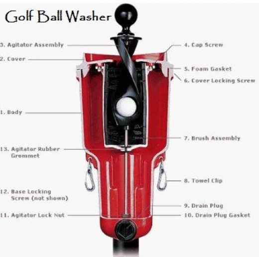 I sit there for a really long 10 seconds trying to figure out how big this (presumably) industrial ball washing machine must be for someone to break their legs falling off it.  Then I thought maybe it was a cheesy sex joke and there is a large woman who washes the range balls and some dude was trying to hit it.  Finally like 15 seconds later the other old guy goes "It was a joke, ignore him he gets stupid this time of day".  And then I realize we're parked next to a 3 foot tall manual washer and that's what the joke was about.
