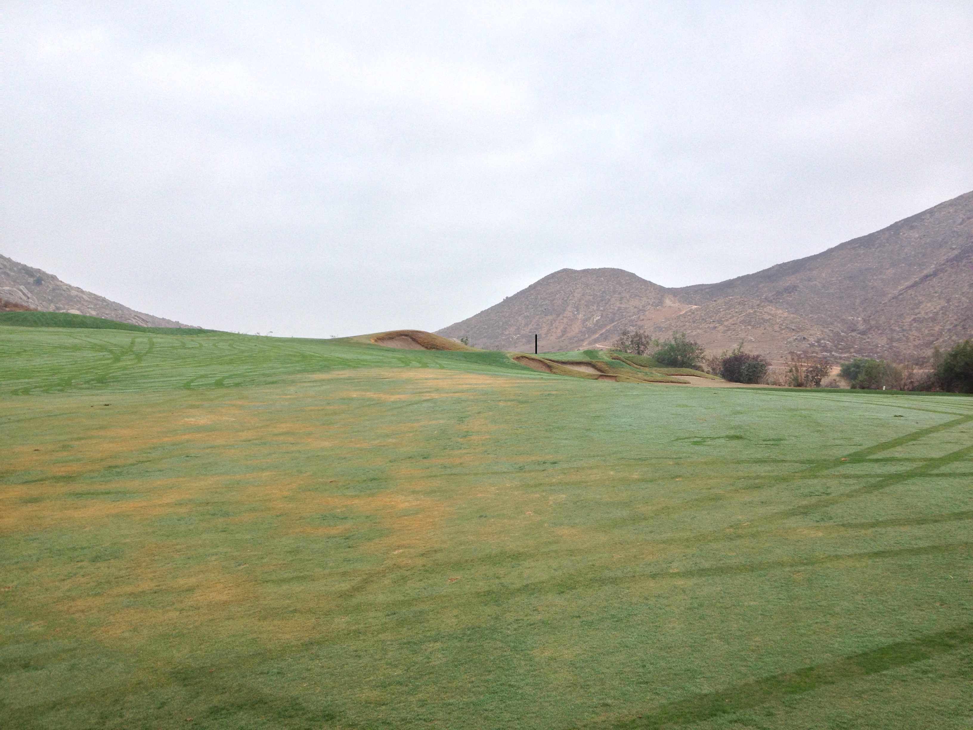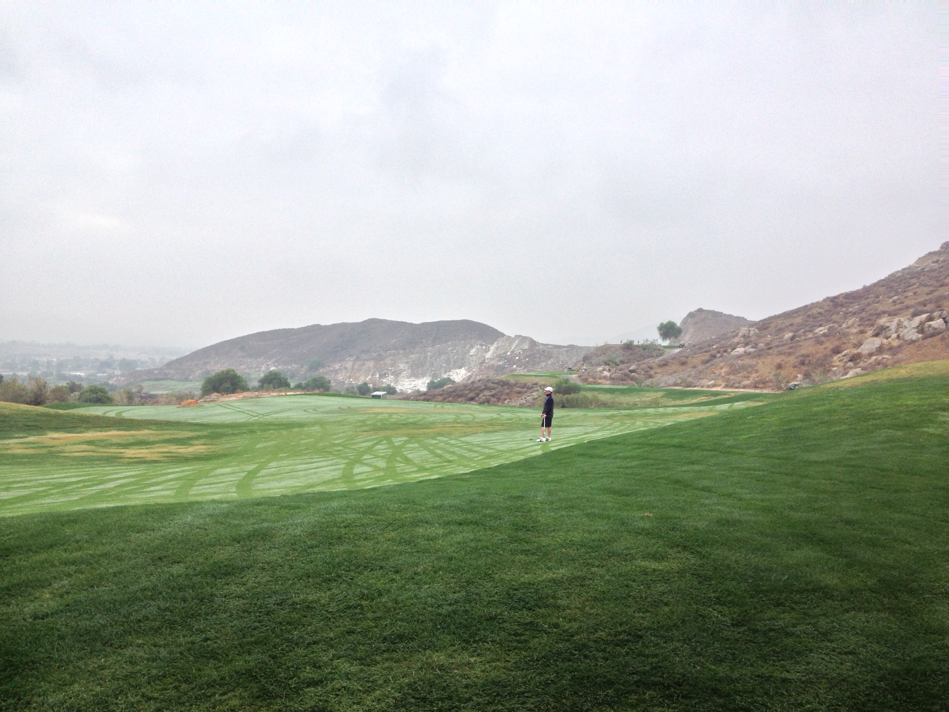 The first hole at Oak Quarry (where our Socal Outing was held yesterday) is a 274 yard Par 4.  It's about 140 yards to reach the fairway over the ravine, and about 210 to reach the first bunker.  That part of the fairway is roughly 80 yards wide.  The first half of this portion of the fairway is flat (140-180), and the second half starts heading uphill (180-210).  Any ball on this portion of the fairway could leave you with an awkward uphill/sidehill lie.  From 210 to about 240, the fairway pinches down to about 12 yards wide, and continues sloping uphill.  Beyond 240, the fairway and green combined is about 35-40 yards wide, and it flattens out.  Any miss to the right is dead.  It's all a ravine and the chances of finding a ball over there are slim, and if you do, the chances of it being playable are slimmer.  The hole plays probably about 20' or so uphill and, at least yesterday, the wind was pretty calm.