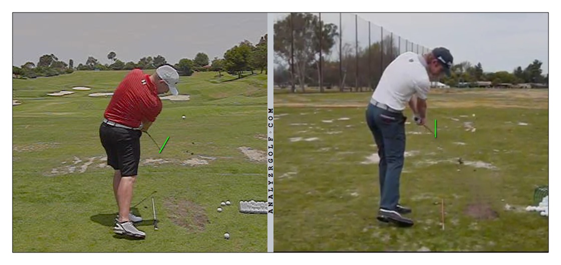 The guys in the left pics drew it and the golfers on the right both faded it, yet the guy in the red is in a similar position as the guy in the lower right but the ball flights are curving in opposite directions.