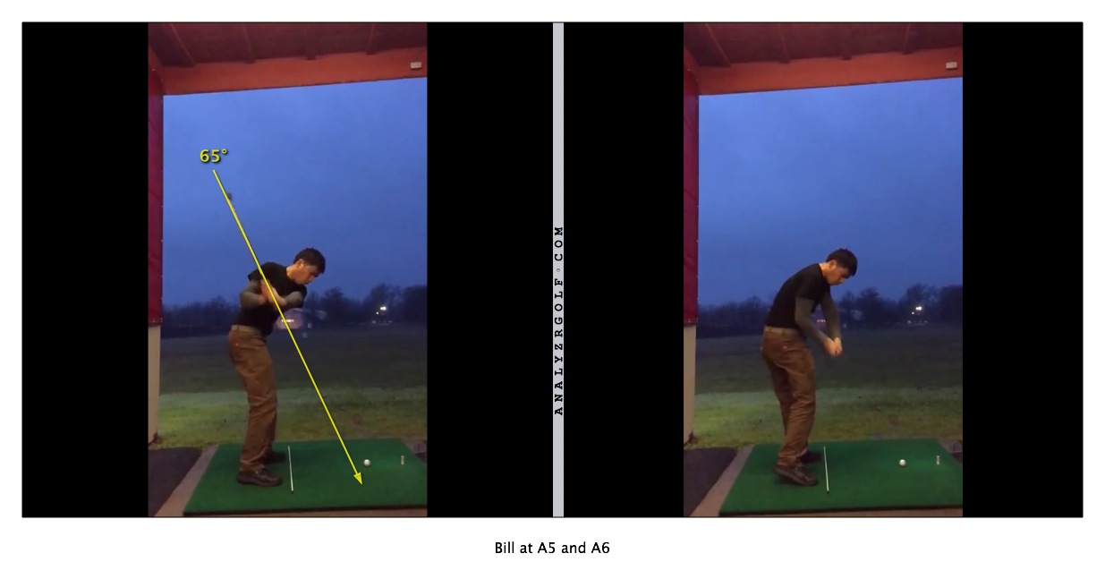 @billchao , In the second video, you are still a bit steep at A5, which may make you have to compensate to get to an inside path.  I am working on this too. I have tried the feeling of the club head making a big loop from A3.5 to A5.  Feel isn't real.  When I see it on film, the club head just flattens a bit from A4 to A5.  Also, my right elbow will be lower and more forward at A5, like Jason Dufner. [URL=http://thesandtrap.com/content/type/61/id/110928/] [/URL]