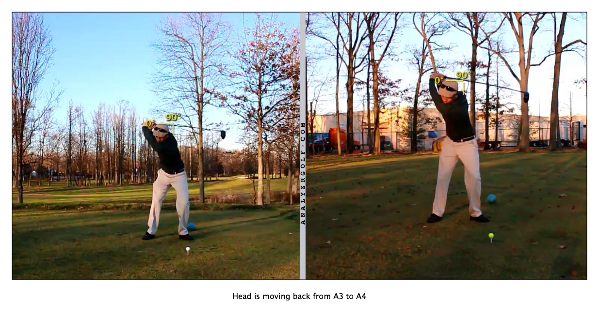 Bill, One thing I noticed with the driver was your head is moving back quite a bit from A3 to A4.  You are getting back in time for impact, but they may be some compensations required to do that.  The lines indicate your head position at A1. [URL=http://thesandtrap.com/content/type/61/id/111032/] [/URL] [URL=http://thesandtrap.com/content/type/61/id/111033/] [/URL]