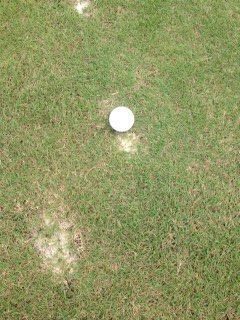 I hit a drive of about 230 yards to the left center of the fairway, just where I aimed it (I love target golf). When I arrived at my ball, I not only saw that it had found a divot, but it was also sitting on top of a one-inch pile of sand that had been left there by a earlier player with an over exuberant sand can. Or maybe it was a member of the grounds crew, who knows.