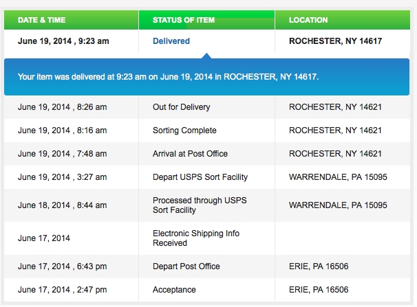Hrm, I hope the USPS waved at me as passed Albany after leaving [COLOR=202020]Warrendale, PA [/COLOR]this morning at 3:27AM and [COLOR=202020]arrived at [/COLOR]Springfield, MA at 12:49PM. :doh: