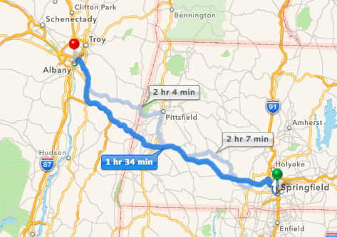 Hrm, I hope the USPS waved at me as passed Albany after leaving Warrendale, PA this morning at 3:27AM and arrived at Springfield, MA at 12:49PM.