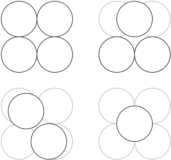 Consider a 2 x 2 space - you could fit any number of chips there from 4 to 3 to 2 to 1: