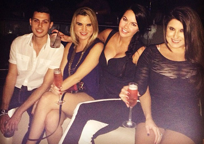 Yeah, and he's got his other arm around his other (male) friend.  So what?  My wife and I have a close group of friends and hang out together, sometimes at pools or beaches and in bathing suits ... I'm not going to go find her and insist I stand next to her every time somebody grabs a camera.  And, I fully expect whichever person is standing next to her to put their arm around her, and I would put my arms around whichever girls/dudes I happen to be standing next to.  This is what friends do.