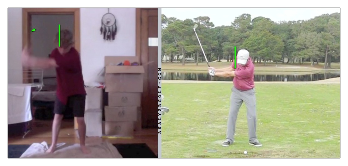 Right pic, note how the golfer's shoulders are turning much more vertically which also allows them to turn further.