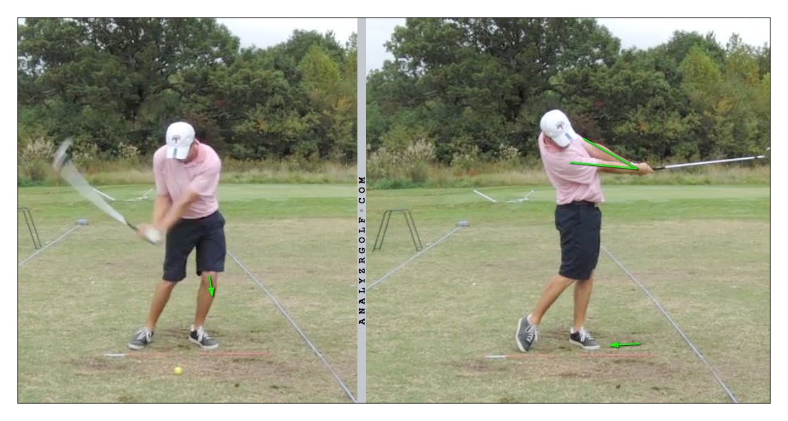 Agree with what you said regarding the right knee kicking in, heel raising too fast. Stalls the pivot, like Erik said, gives you that narrow cramped look in the followthrough.