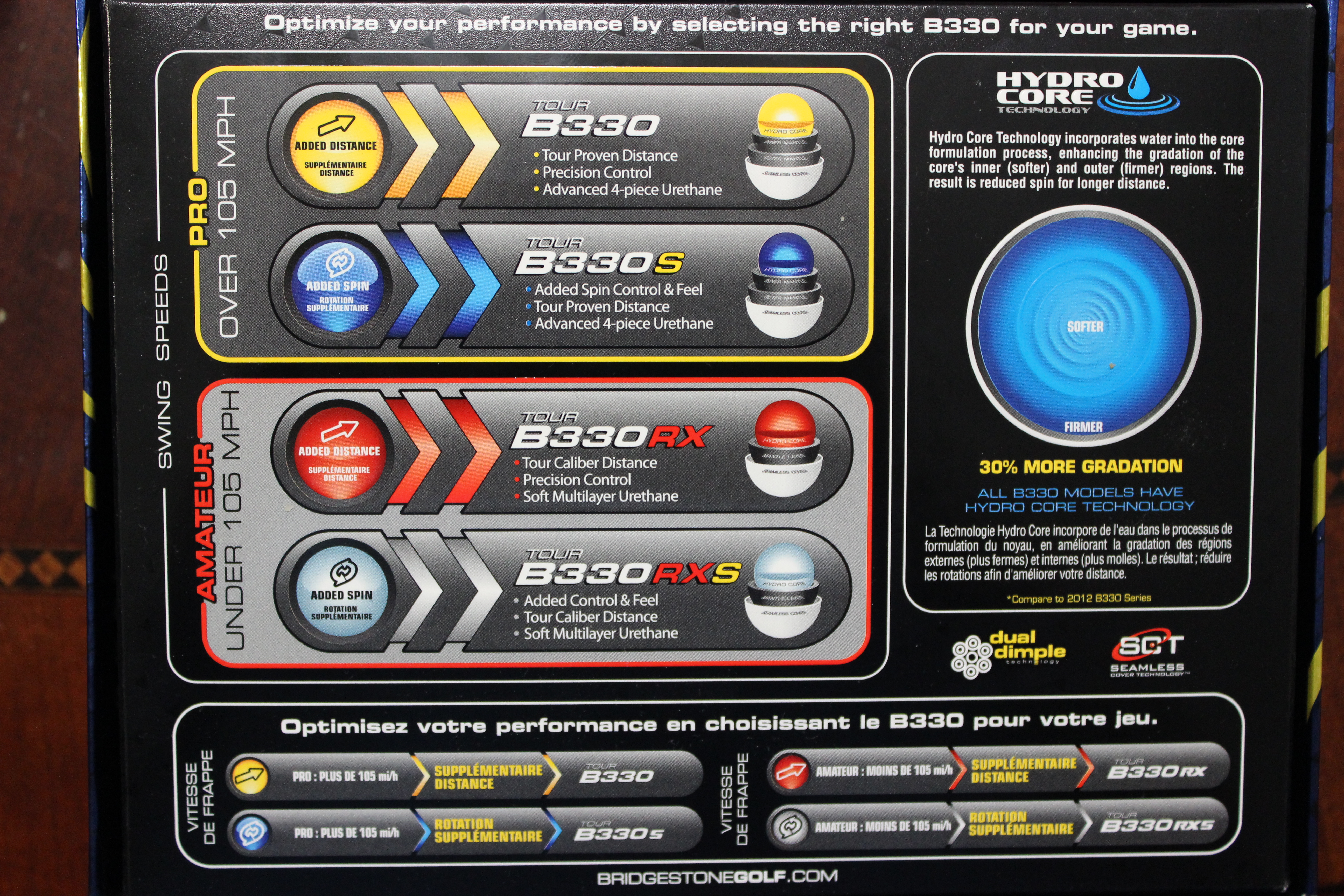 What I received: Bridgestone’s Tour B330-S :  Tour performance with more spin and swing speeds greater than 105 MPH.