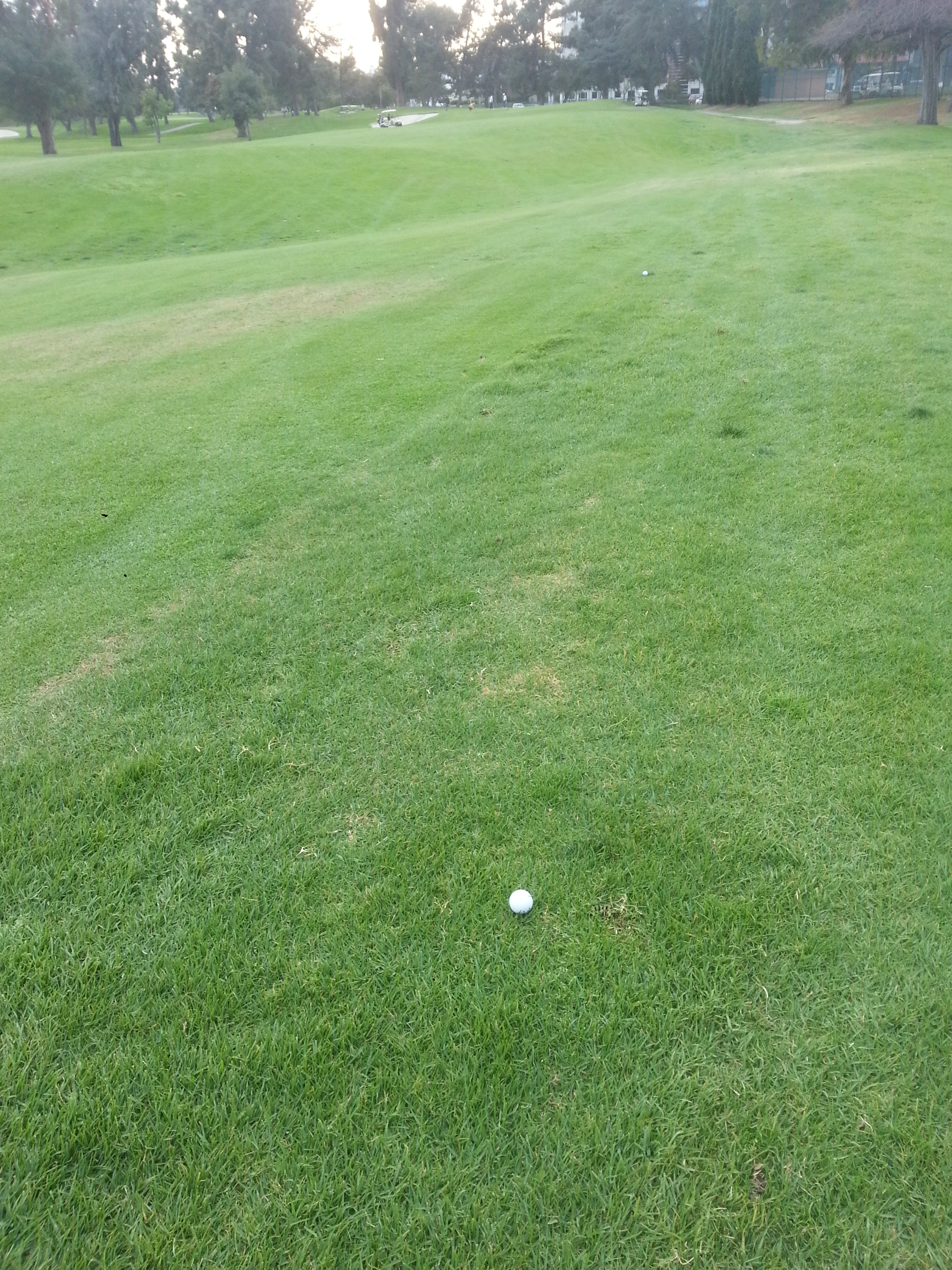 Tee shot drives with Bridgestone in the foreground and Callaway Hex Control in the background. This was the longest shot of three B330-S balls. The other two are only about 2 yards behind and off line, and the picture I took including those was blurry. Pace of play was a problem that day and I did not want to be a part of it, so I only hit 3-4 balls per hole. :whistle: