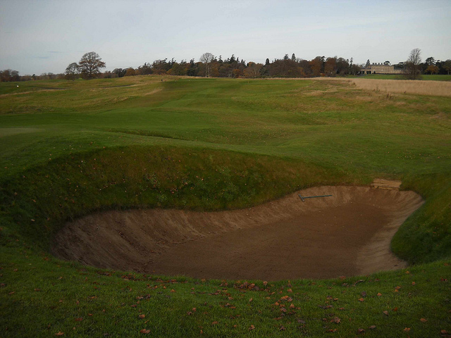 Here's the type of bunker...note the 5-6 foot rake in the bunker, it gives some scale of just how big they are...absolute monsters. This one is about 18-20 feet at its highest point!!! Cruel.