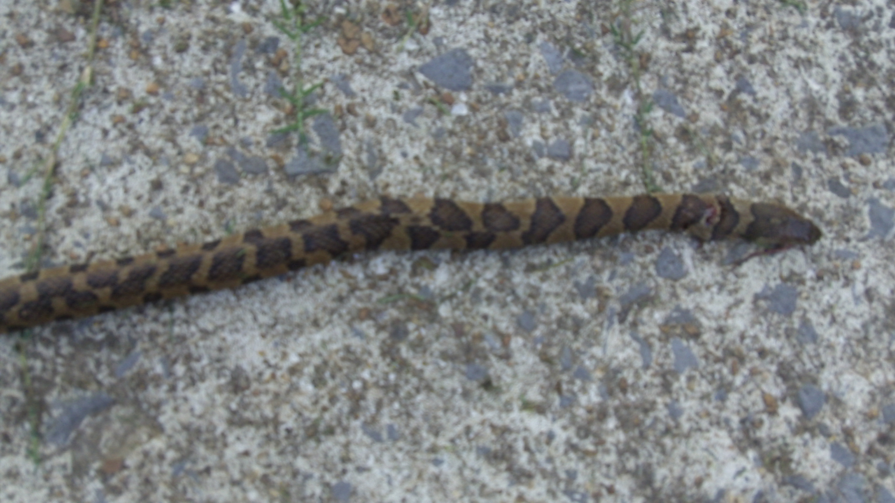 Pretty sure it wasn't a ground rattler because when I pried it's mouth open I couldn't see any fangs (unless they were folded back in). Hard to tell because it's mouth was bloody from being hit in the head. Plus the head really didn't look like a poisonous snake.