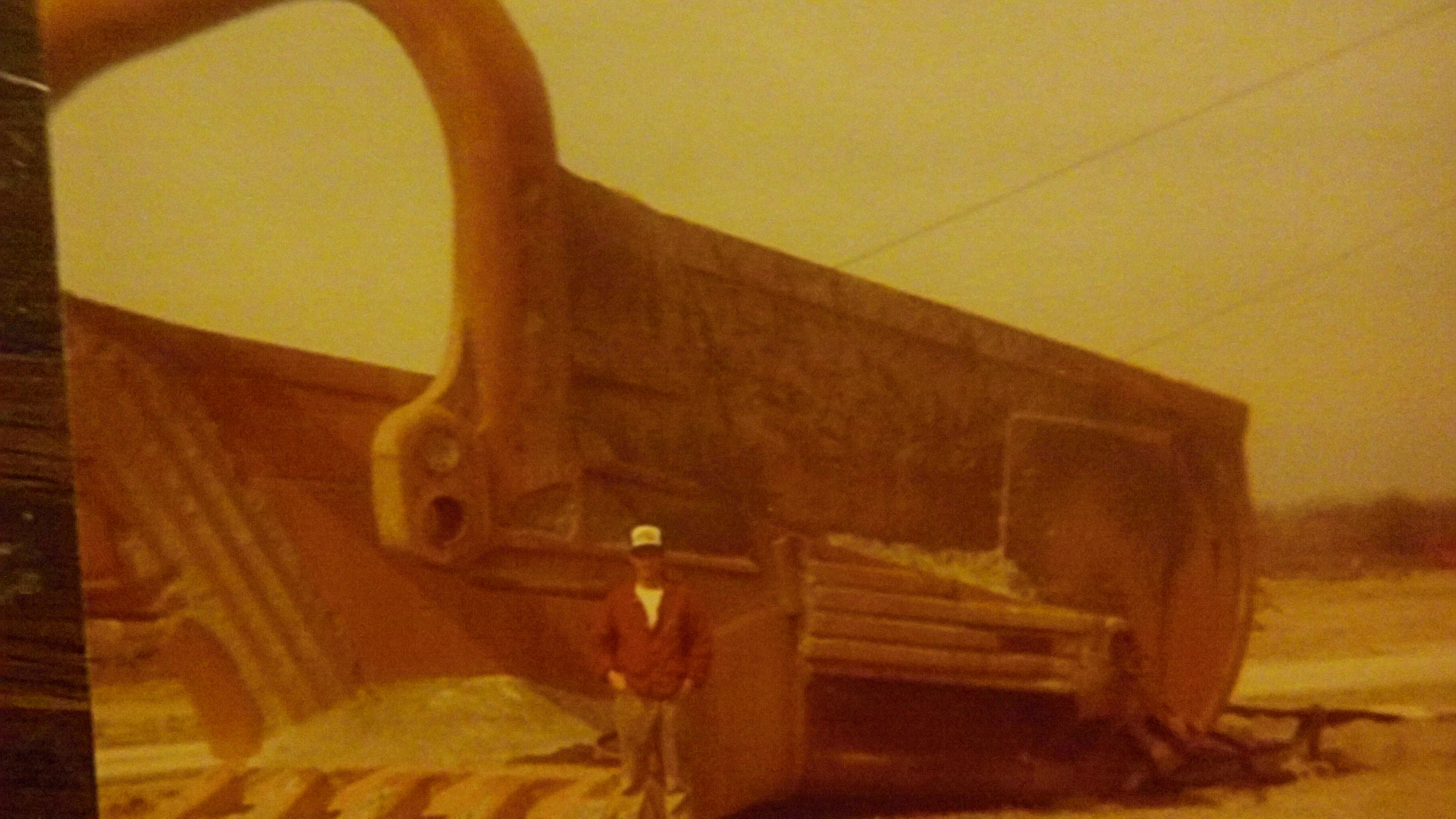 Hey any of ya'll want to see the bucket off of the machine I used to work on? I was going through some old pics that daddy had and came across this one of me standing by the bucket.